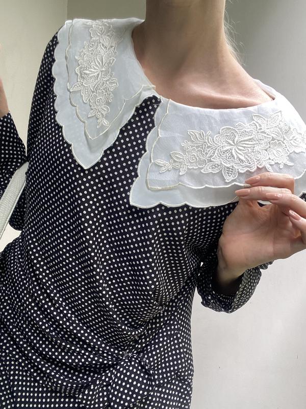 Черное классическое платье миди для леди, в мелкое белоснежный горошек и с акцентным большим белым воротничком. Приталенная, с юбкой А-силуэта. Тканина- шифон. Размер S Замеры: длина 99 см, плечи 38см, длина рукава 57 см, ПОГ 47 см, пот 39 см, ПОС 50 см 🔸Передплата 100% на карту Приватбанку 🔸Наложенного платежа,нажаль, нет ❗️Отправка ТОЛЬКО новой почтой за счет покупателя ❗️Укрпочты и кофеина рядом НЕМеждует ❌Обмен и возврат НЕ предусмотрен❌ 🔸Бронь ТОЛЬКО на проплату - 24 часа (снимается автоматически без предупреждения и передается следующему в очереди покупателю) 🔸Если необходимы дополнительные фото или замеры — пишите, с радостью ответьте Вам! ❤️Удачных приобретений!❤️