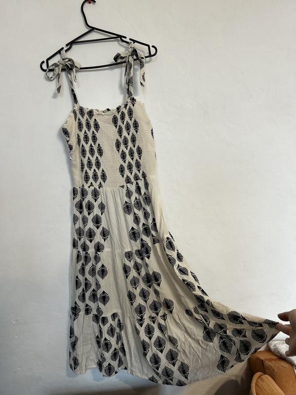 F&f платье летнее миди вискоза на бретелях с бантиками принт листочки до талии на рези...