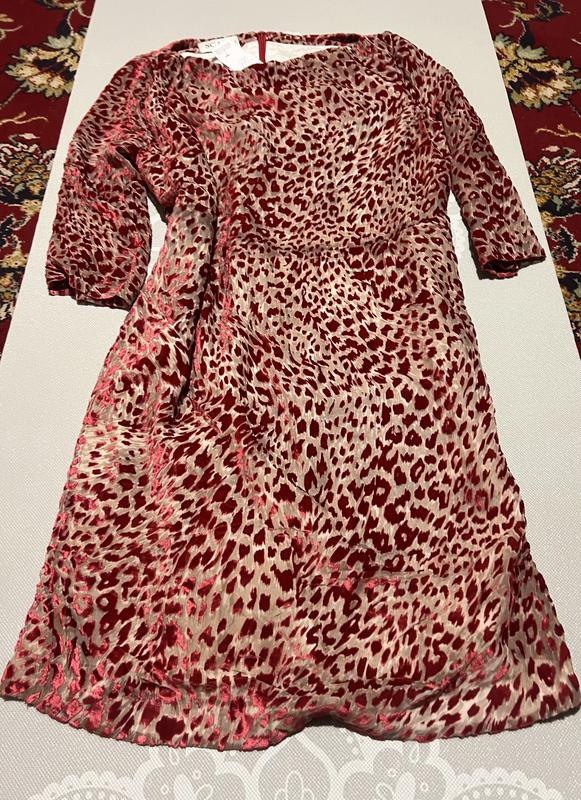 Красивое платье дорогого бренда, приобретала через ткань, очень приятное и эффектное, не банальный анималистичный принт, состояние очень хорошее идет на м-л Ширина плечей 42см Довжина рукава 49 Довжина сукні 100 Пог 55 Пот 44 Поб 54