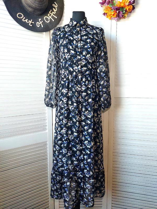 Замеры🦋 Длинна по спинке 128см ПОГ в застёгнутом виде 43,5см ПОТ в застёгнутом виде 39см свободная линия талии отрезная. ПОБ в застёгнутом виде розложыв на пол 69см свободные Плечи 34см Рукав 58см ПОХ рукава под мышкой 19см Платье миди черное в цветочный принт из шифона next размере 6 Размере на бирке 6 подойдет на xs-s і небольшая м Это очаровательное платье станет отличным дополнением вашего гардероба. Форма платья подчеркивает и создавая эффектный образ. Состояние супер без каких либо дифектов 🦋 Это именно то - удобное, милое платье которое нужно любой девушке.Самый удобный фасон платье отлично сядет по фигуре❤ непросвещается на подкладке. На все ❓ дам ответ ✅