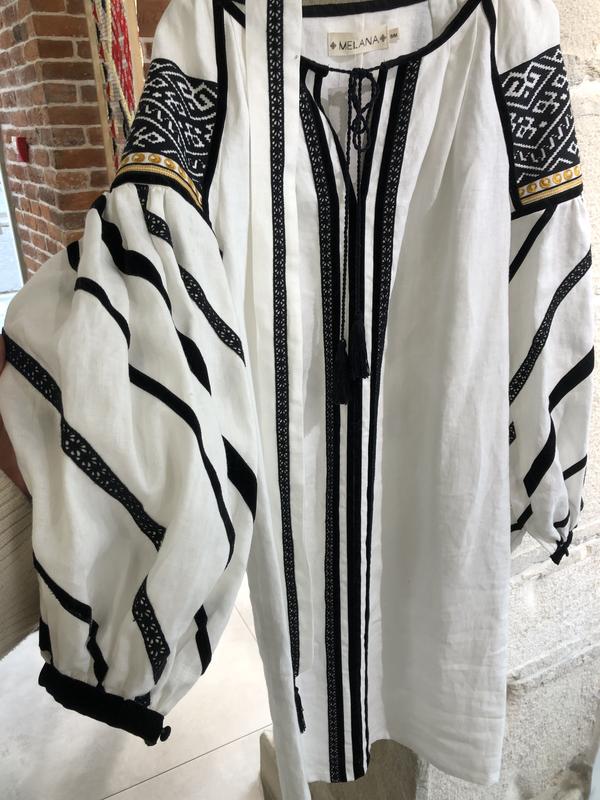 Красивое платье из 100% льна, машинная вышивка! Размер С-М другие могут быть под заказ! Есть в коллекции также мужская рубашка с таким орнаментом!