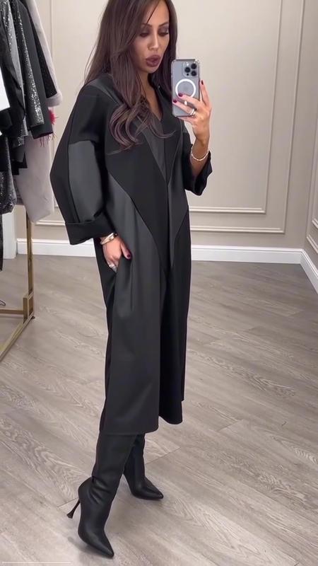 Платье Модель 907VL Цена : 830 грн Размеры: 46-48,50-52,54-56,58-60,62-64,66-68 Ткань : дайвинг, экокожа Цвет: черный Свободное платье, спущенный рукав ниже локтя, комбинированное платье, по бокам карманы, сзади разрез. Замеры изделия: Размер 46-48: Объем груди 120 Объем талии 112 Объем бёдер 114 Длина рукава от горловины 59 Длина платья по спинке 109 Бицепс 48 Размер 50-52: Объем груди 130 Объем талии 120 Обʼєм стегон 126 Длина рукава от горловины 60 Длина платья по спинке 111 Бицепс 50 Размер 54-56: Объем груди 138 Объем талии 128 Объем бёдер 136 Длина рукава от горловины 64 Длина платья по спинке 111 Бицепс 51 Размер 58-60: Объем груди 150 Объем талии 140 Объем бёдер 146 Длина рукава от горловины 66 Длина платья по спинке 112 Бицепс 54 Размер 62-64: Объем груди 158 Объем талии 150 Обʼєм стегон 156 Длина рукава от горловины 67 Длина платья по спинке 112 Бицепс 58 Размер 66-68: Объем груди 174 Объем талии 160 Обʼєм стегон 166 Длина рукава от горловины 68 Длина платья по спинке 112 Бицепс 58