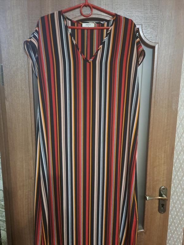 Платье летнее в разноцветную полоску, свободного покроя с пояском 48-50р.