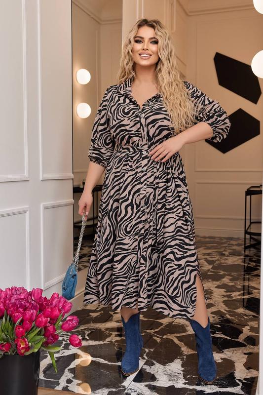 Платье рубашка миди в принт зебра полоска с поясом на пуговицах с разрезами по бокам супер...