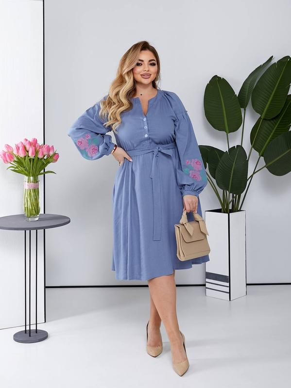 Стильное вышиванка вышитое платье вышитое платье батал меди до колена на пуговицах