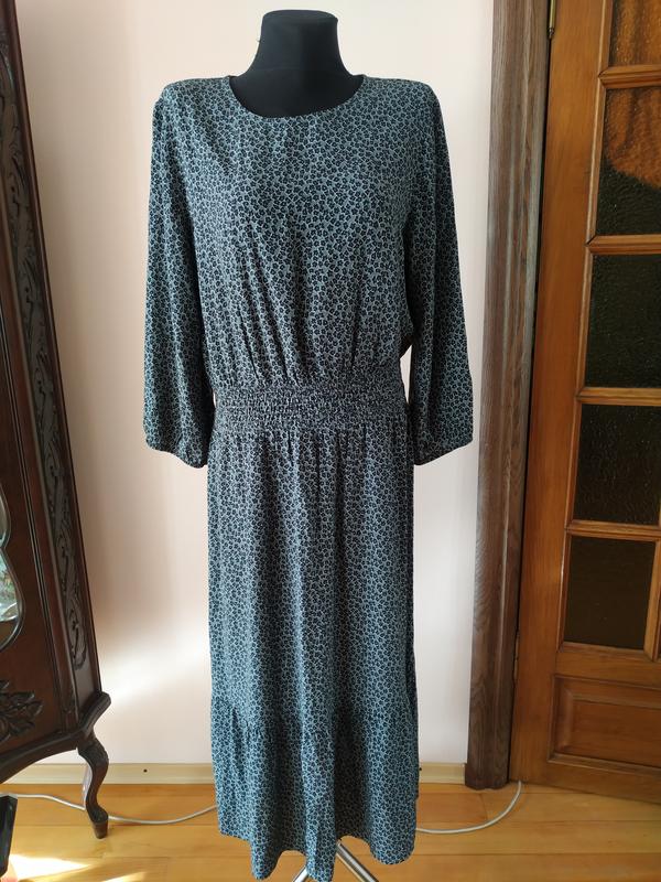 Прекрасное платье миди Tu из натуральной ткани Стан - идеальный Ткань вискоза, как шелк Замеры полуобхват груди 51 полуобхват бедер 60 полу охват талии 39, тянется, резинка длина 116
