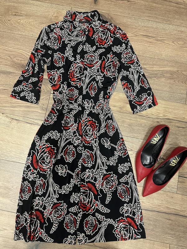Платье халат миди бренда Wather Очень стильная и яркая Красиво садится по фигуре, на пуговицах Тканина тягнеться Размер S Длина 99 ПОГ 45 см ПОТ 35 см