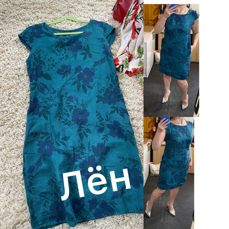 Льняное платье миди в цветочный цвет ,красивый сине/зеленый цвет,состояние идеальное,есть карманы ,на спинке по бокам вставки из трикотажа Размер примерно 10-12,на фото на 12 и рост 170 Замеры Плечи 39 ПОГ 50+ Пот 42+ Поб 54+ Длина 97