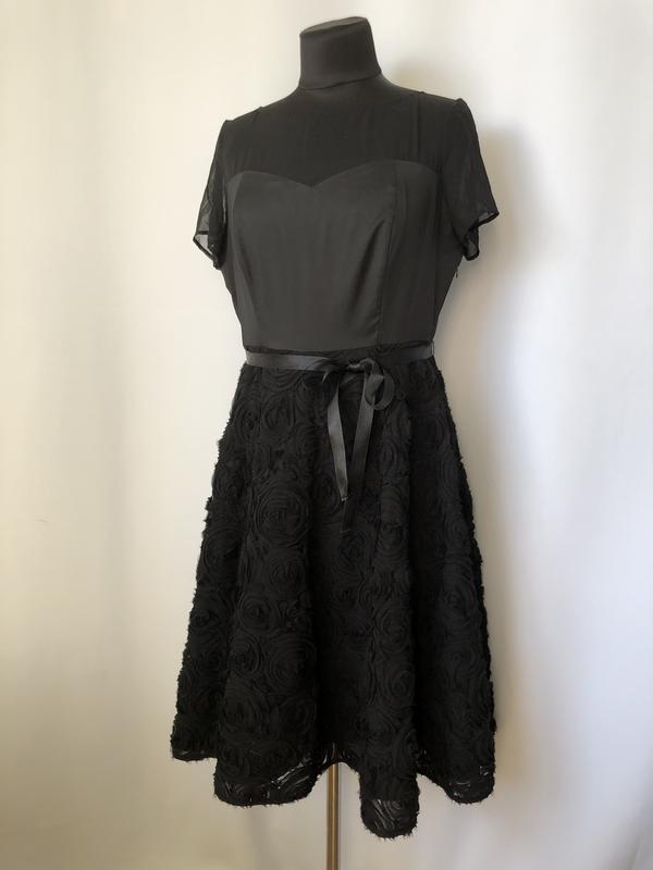 M&s черное платье концертное нарядное с пышной юбкой с розами прозрачный верх готек