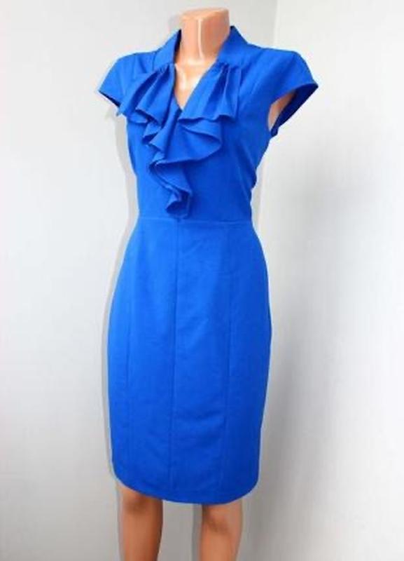 Стильное синие классическое миди платье с рюшами calvin klein р. с, 44