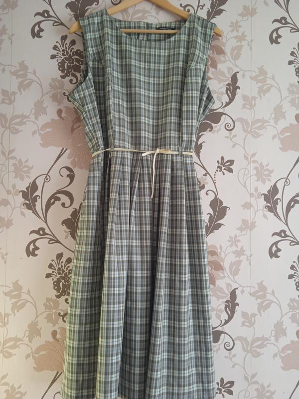 плотная ткань, носить с гольфом, блузкой или футболкой пог 57, пот 48, поб свободно, длина 106, можно носить с пояском (на фото веревку для примера)