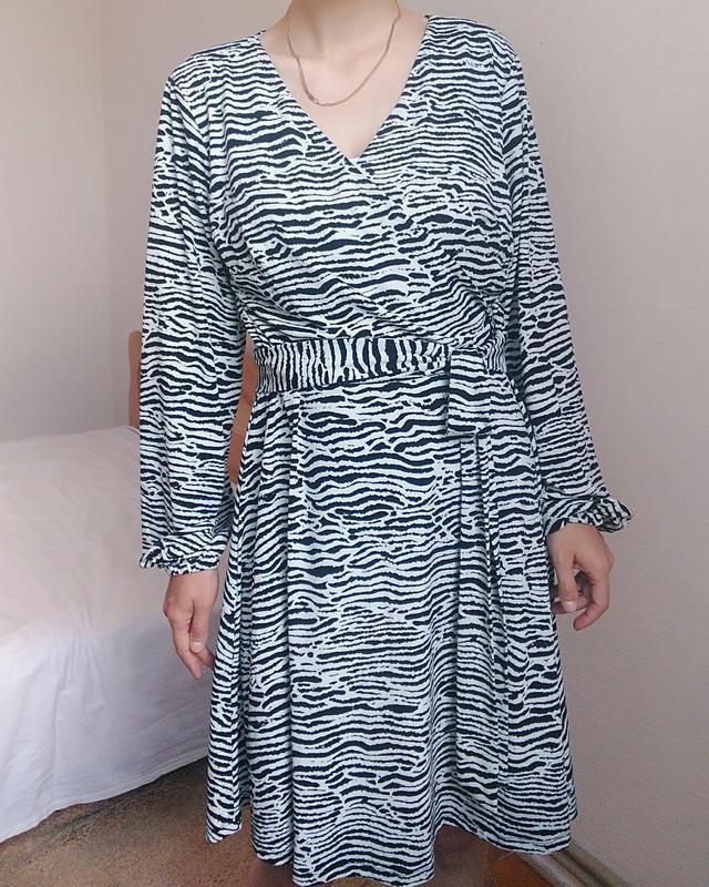 Красивое платье на запах платья миди платье с поясом платье зебра с объемными рукавами пла...