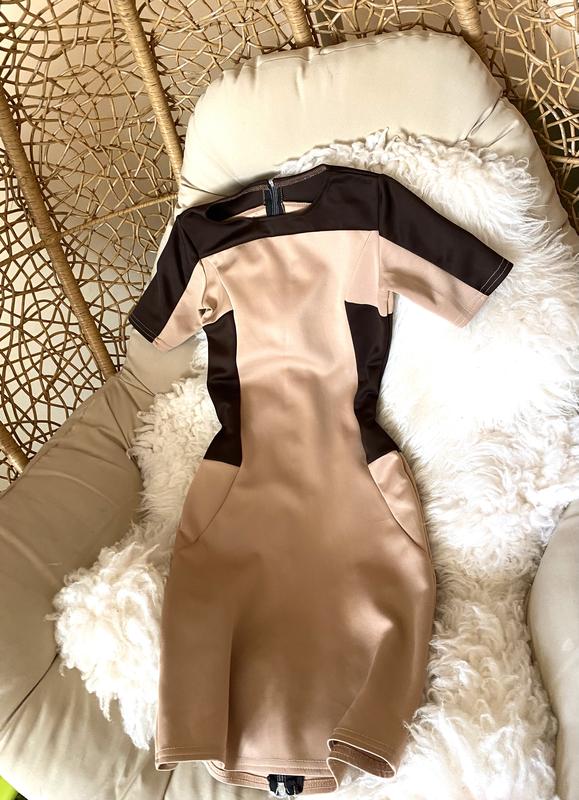 Чудова класична сукня на кожен день😍 Дуже зручна,приємна,елегантна!можна як літом носити,так і взимку під кофтинку! Тканина нагадує еластичний неопрен,підкреслює талію,ззаду молнія,гарні віддтінки какао) Розмір +-С,стан чудовий(є декілька міні-нюансів,показала на 2 останніх фото) Є ще багато фірмового одягу значно дешевше сайтів,бутиків,обов’язково підберемо Вам красу🌺