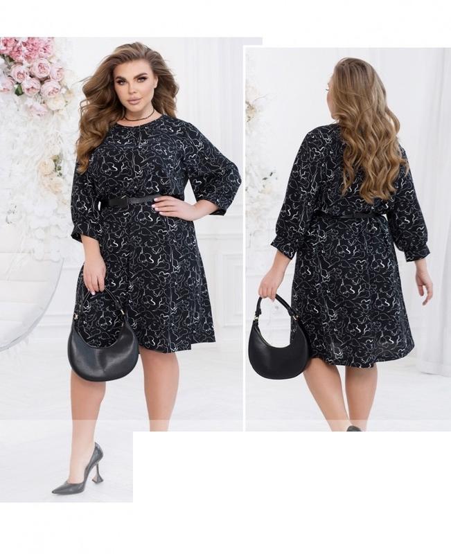 Тканина: американський креп Розміри: 50-52, 54-56, 58-60, 62-64 Пасок входить в комплект Орієнтовні заміри готового виробу: 50-52 р-р: довжина сукні 105см, довжина рукава від плечового шва 45см, обхват рукава 46см, ОГ - 120см, ОТ -122см, OC -128см. 54-56 р-р: довжина сукні 107см, довжина рукава від плечового шва 46см, обхват рукава 48см, ОГ - 126см, ОТ -128см, OC -134см. 58-60 р-р: довжина сукні 108см, довжина рукава від плечового шва 47см, обхват рукава 50см, ОГ - 132см, ОТ -134см, OC -140см. 62-64 р-р: довжина сукні 110см, довжина рукава від плечового шва 48см, обхват рукава 52см, ОГ - 138см, ОТ -140см, OC -146см. нг