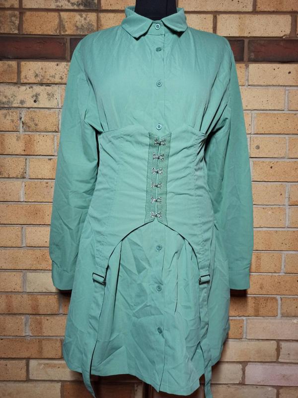 Чудова молодіжна модель.Пог 53, по низу 60, рукав 60, плесі 44, довжина по спинці 82. Крой рубашки, стягує корсет.