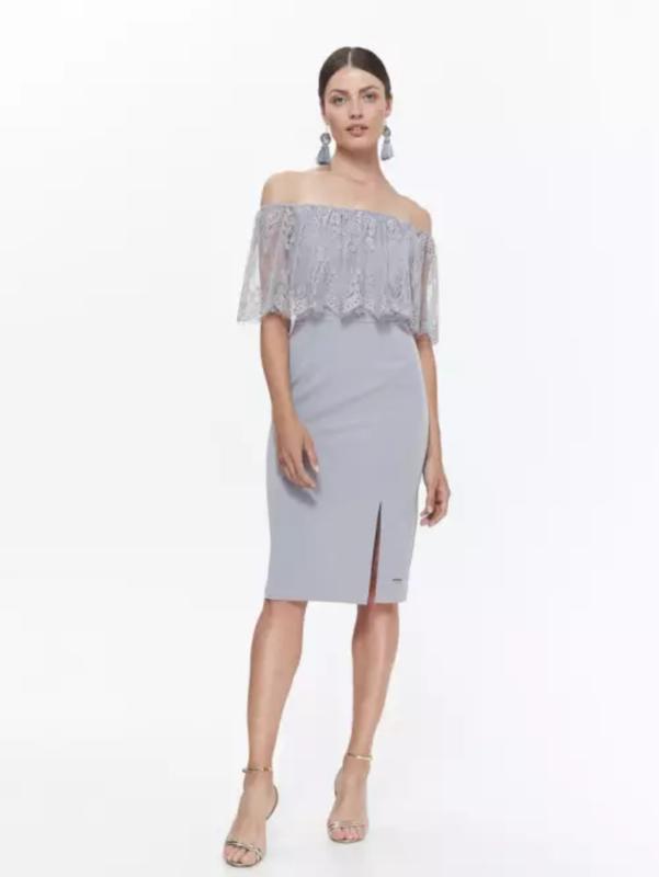 Платье Top Secret из коллекции весна лето Элегантное коктейльное платье из более плотной ткани. Платье с открытыми рукавами, на подкладке, с декоративным кружевным воланом в верхней части. Чрезвычайно женственное платье с декоративным разрезом спереди. Идеально подходит для особых случаев, платье доступно в светло-сером цвете 78% ПОЛІЕСТЕР 18% ВЕСКОЗЫ 4% ЕЛАСТАНУ