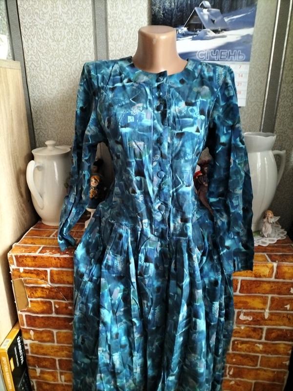 вінтажна х/б сукня, стан без зауважень, принт абстракція, приталена, закладені складки по талії, кармани, рукав 3/4 плечі 40 пог46 талія46 трохи занижена довжина108 рукав52