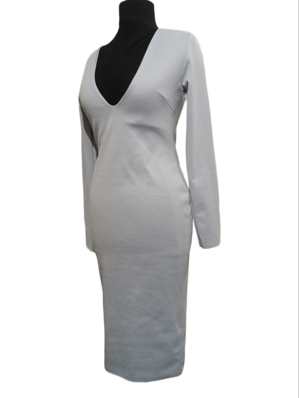 Новое платье Misguided серого цвета с глубоким декольте. С биркой. На бирке указаны размеры UK10, US6