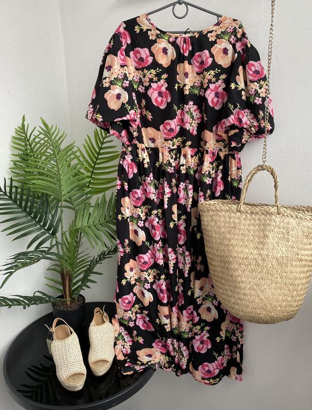 Роскошное пышное цветное платье цветочный принт цветы миди макси