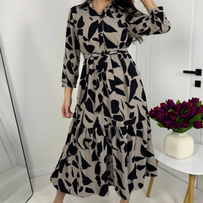 Платье Арт 554 Тканина софт Цвет кофейный, черный, электрик Размер 42-44,46-48,50-52 Цена 585 грн Платье свободного кроя, воротник стойка, закрывается сверху на пуговицы. Пояс идет отдельно, не пришит, рукав 3/4 (застегивается на пуговицу) #harizma