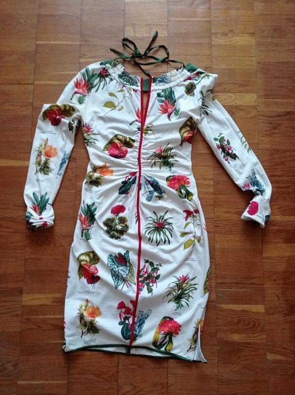 Модель по мотивам Roberto Cavalli. Шикарный принт на итальянском коттоне с небольшим количеством спандекса. На ощупь - сама нежность. Материал тянется. Вырез по спинке. Уникальная по дизайну и материалу. Замеры: Грудь - 96, талия - 74, бедра - 100, длина рукава - 63 (можно развернуть еще на 5 см), длина - 99 см.