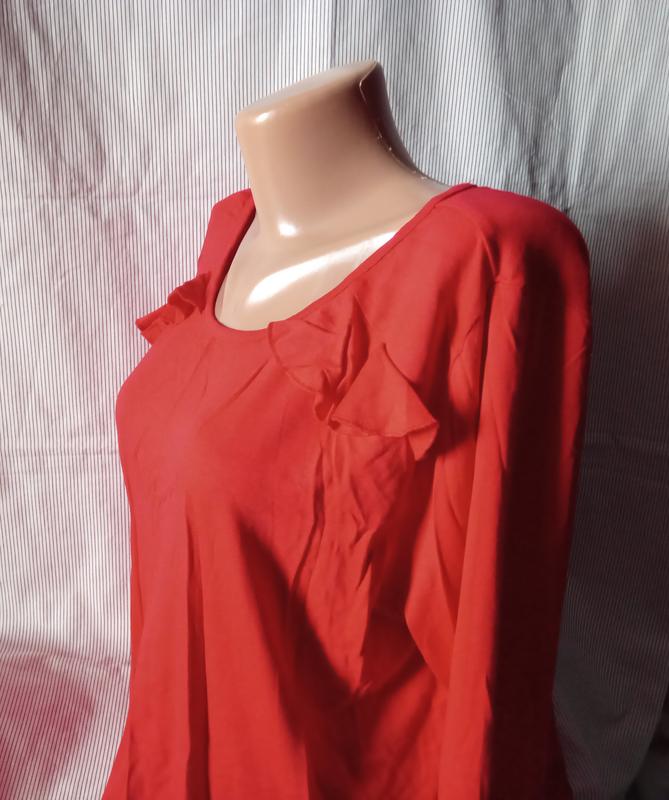 Натуральна,стильна. Оздоблена рюшами. ФОТО НА ТІЛІ НЕМАЄ. Довжина 87 Завширш(пахви) 59/65 Річ нова,без паперової бірки -СТОК.