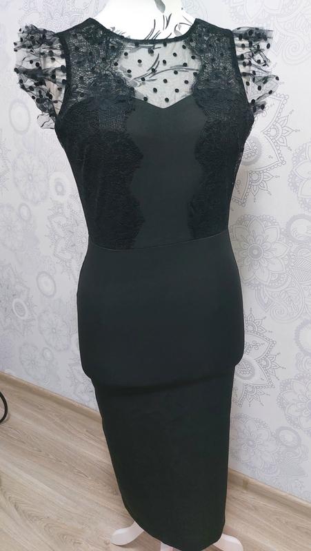 Дуже гарна сукня-футляр з велюровим ремінцем для підкреслення талії. Верх з вуалю з велюровими вкрапленнями горошком. Тканина тягнеться