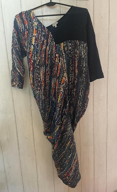 Шовк. Очень эффектно смотрится за счет необычного кроя. Оригинальный. Ни разу не выходили из дома. Пролет с размером