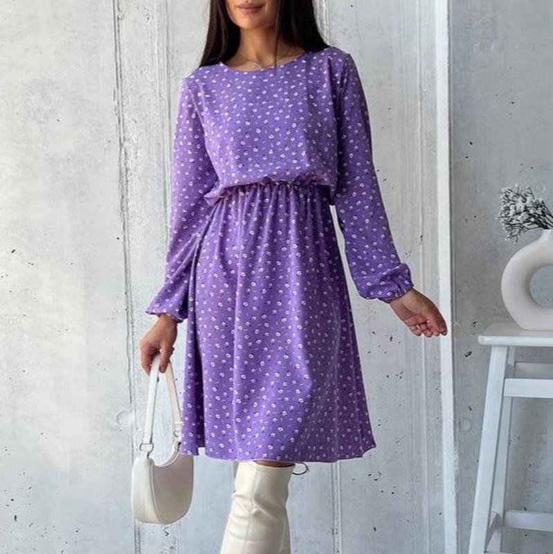 Легкое летнее платье женское сиреневое в цветах короткое коктейльное платье с рукавом своб...