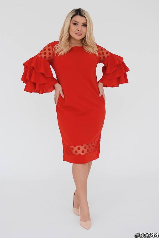 Платье Мод 337 Цена :1280грн Ткань:креп-дайвинг +сетка горох Размер:,50-52,54-56,58-60 цвет;черный, красный 50-52 ОГ - 105см, длина рукава- 45 см, длина изделия - 104 см, ОБ - 110см 54-56 ОГ - 113 см, длина рукава- 45 см, длина изделия - 107 см, ОБ - 118 см 58-60 ОГ - 121 см, длина рукава - 45 см, длина изделия - 107 см, ОБ - 126 см змеек и застежек нет Замеры сняты по изделию