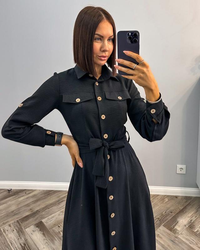 ❗На странице есть БОЛЬШОЙ АСОРТИМЕНТ другой одежды по ДОСТУПНЫМИ ЦЕНАМИ🤗❗ ◾Есть обмен и возврат 💳 После платья с мин. подпиской 📸 Фото прицела ▪️Тканина: креп-жатка ▪️Цвет: бежевый, хаки, черный ▪️Размеры: S, M, L, XL, 2XL ✅ Платье-рубашка макси длины с боковыми разрезами. Модель с накладными карманами, рукав регулируется патиком, застегивается на пуговицы по всей длине. Арт. S-V 4/18/0041 Бб