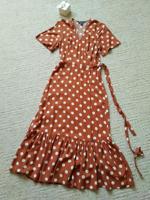 Платье в горох в стиле ,,красотка", платье миди на запах 100% вискоза размер 36