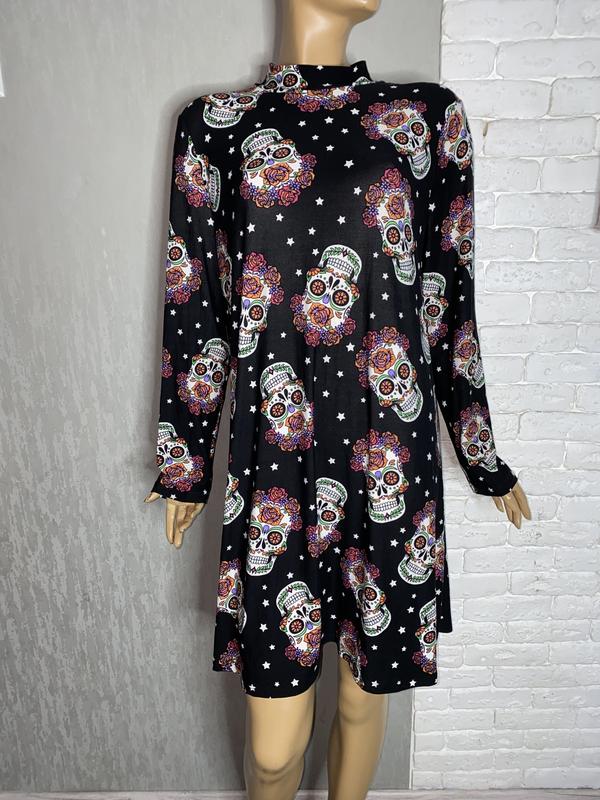 Трикотажная сукня Плаття вільного крою у принт мексиканські черепи Papaya XXXL. Довжина 93,5см, рукав 61см, ПОГ 58см, ПОБ 65см