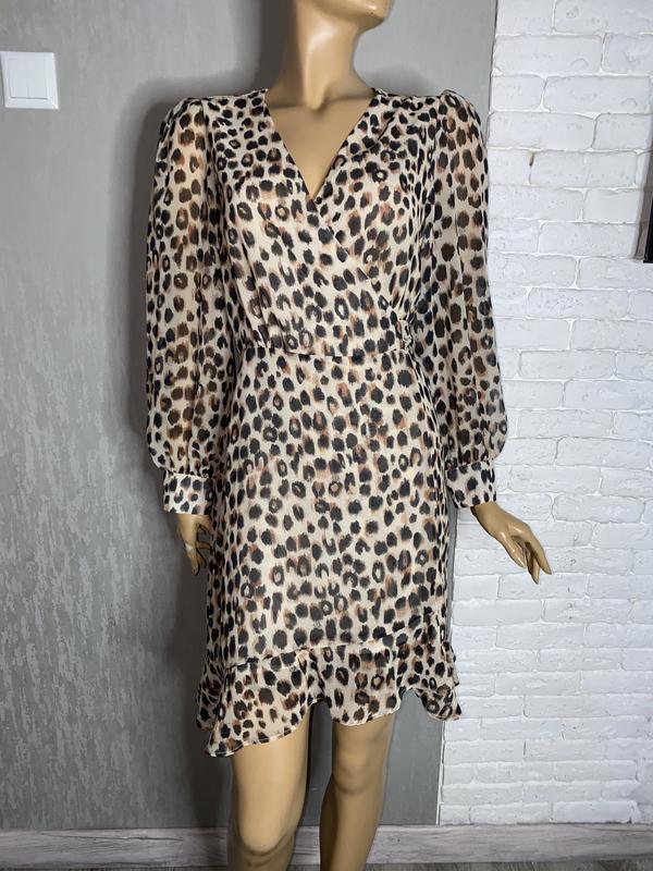 Сукня на запах у леопардовий принт плаття з довгими об’ємними рукавами mango, m