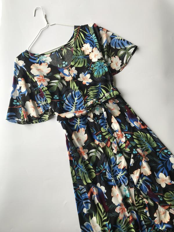 Сукня в тропічний принт на бірці XS, але буде на S вискоза півобхвати груди-42см(тянется до 45см) талія- 38см стегна-50см довжина сукні -140см