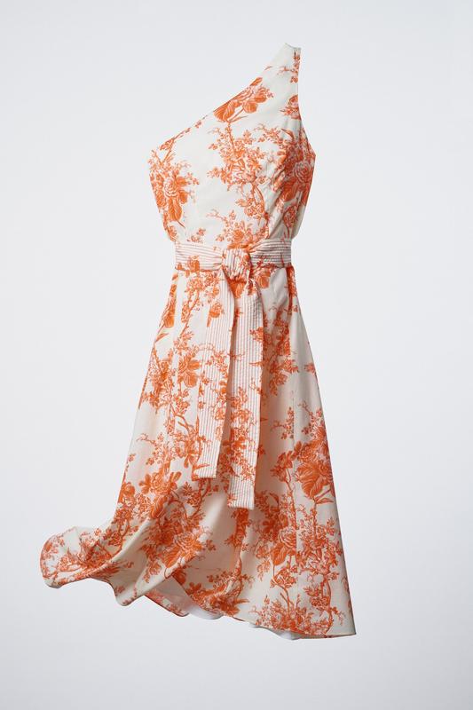 Платье миди из хлопка. Асимметричный вырез и широкие бретели. Повязанный пояс из той же ткани. Невидимая боковая застежка-молния. В наличии М Ціна по бірці 69€ Пог/44 Талия-39 Бедра-58 Длж-124