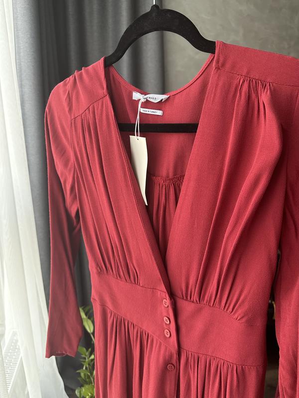 Сукня міді у розмірі XS / 34 Заміри: Довжина товару - 120 см. Довжина рукава - 58 см. Ширина на рівні плечей - 36 см Ширина на рівні грудей - 37 см Ширина на рівні талії -32 см