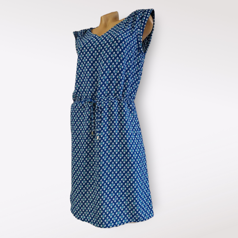 Гарна,легка сукня,з шовковистої тканини,не просвічує.У поясі поясок стяжка.По боках кишені.Йде на розмір M,L.Бірка з розміром відсутня.Річ у ідеальному стані. ног-46 нот-44 нос-51 довжина -95.