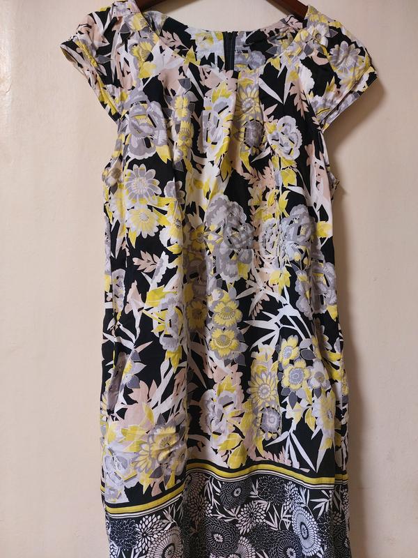 по бокам карманы,100% вискоза Довжина по спинці 85 см, полуобхват грудей 49 см, талія 45 см, стегна 53 см