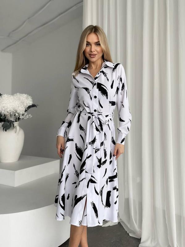 💥Принтована сукня-сорочка. Модель із відкладним коміром. Відрізана по талії. Рукави з манжети. Застібається на ґудзики. Комплектується поясом із основного матеріалу. ✔Розмір:42-44,46-48,50-52 ▪️довжина по спинці - 113+см ▪️довжина рукава - 60+см. 🧵Склад: 100% поліестер 🎨Колір: блакитний,синій, чорний, зелений, білий з чорним, білий з синім. 🧵Матеріал: Софт 💳Ціна :1250грн Арт901212,106456 ‼️Збір замовлення 1-3 дні ‼️