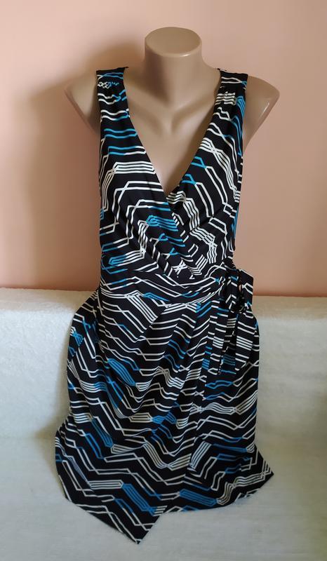 Як нове,в ідеалі!Класне модне платтячко на запах р. 12. Колір реальний фото, склад нитки на фото,гарно дивиться, не світиться,якісне. Заміри без розтягування/ тягнеться: довжина 101см,ПОГ 46/51см, ПОТ регулюється,ПОБ 50/55см, але можна регулювати,тягнеться. Пересилка Нова пошта,Укрпошта.