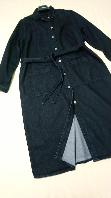 Шикарное джинсовое платье-рубашка цвет чёрный большой размер великолепного качества (коттон 75% полиэстер 25 %) большие накладные карманы отрезное по талии пояс длинный рукав состояние идеальное невероятно комфортно в носке ПОГ 54-55 ПЛЕЧИ 45 ПОТ 51-52 РУК 62 БЕДРА 59-60 ДЛИНА 114