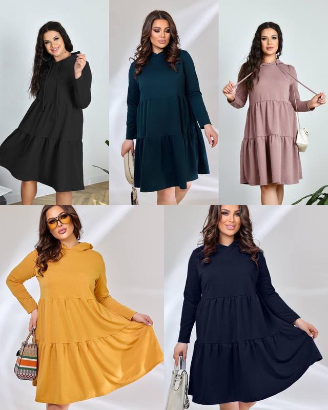 Плаття Мод: 0252 ivch Тканина: двонитка. Колір: пляшка, чорний, капучино, гірчиця , темно Синій Розміри: 48-50; 52-54; 56-58. Довжина рукава: 57см Довжина виробу: 102/103/104 см Ог: 104/112/120 см ОТ: 98/ 102/ 106 см ОС- вільні ВІДПРАВКА протягом 2-4 днів‼️ ❌БЕЗПЕЧНОЮ ОПЛАТОЮ не відправляємо