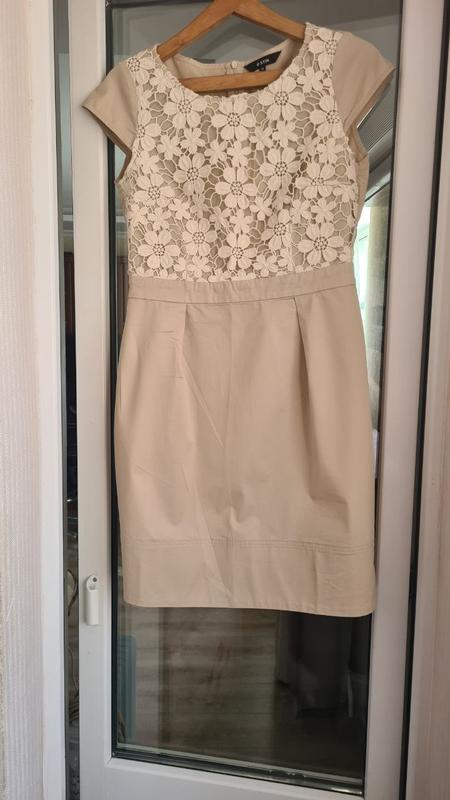 Літня котонова сукня . Ostin, розмір М. На спині блискавка. На ліфі мереживо. Вдягалась один раз. Стан ідеальний. Склад на фото. Колір беж