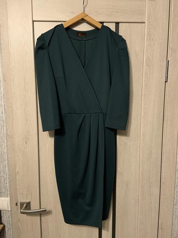 Сукня Lusien. Класична сукня приємного темно-зеленого кольору. Рукав 3/4, по переду на грудях та спідниця на запах, з паском. Заміри: Довжина по спинці 98 см Рукав 49 см Від пахви до пахви у лежачому стані 42 см