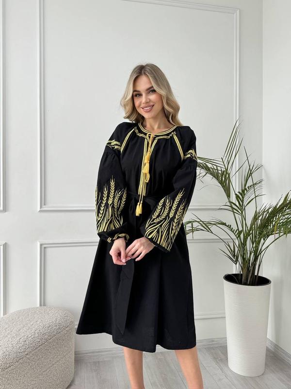 Черное платье миди с вышивкой ❤️ сукня вишиванка ❤️ черное платье с золотой вышивкой ❤️пла...