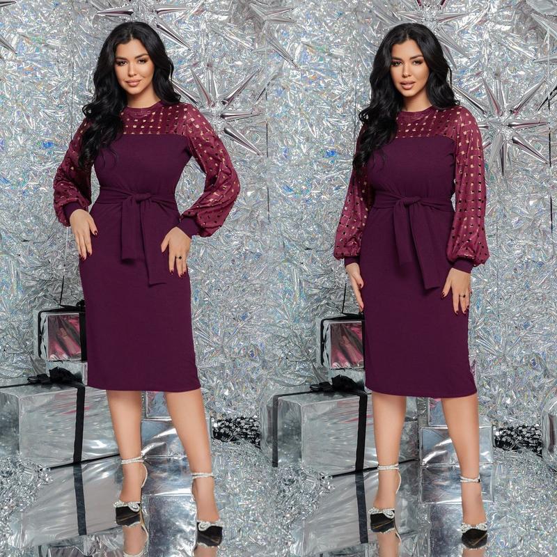 Новинка 🌷🌷🌷🌷🌷 Сукня Модель № 7440-1 Ціна : 540 грн. 🌷🌷🌷ЯКІСТЬ ВІДМІННА Розмір : ‼️46-48; 50-52; 54-56‼️ Тканина : креп - дайвінг + замша - перфорація Довжина сукні : 112 см. Довжина рукава : 70 см. ГАРНА РОЗТЯЖНІСТЬ . Святкова сукня приталенного покрою , з обʼємними рукавами на манжеті . Пояс з основної тканини йде в комплекті . Тканина приємна на дотик , високої якості , не кашлатиться .