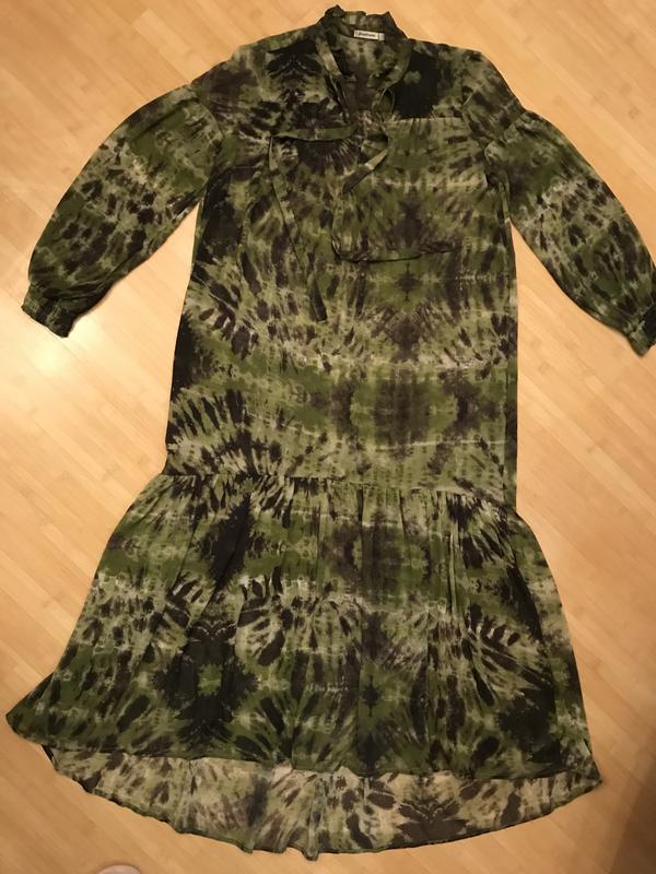 Полупрозрачное платье миди-макси Stradivarius р.S . Есть нижняя комбинация, платье можно надевать также по брюки.Длина по спинке 130, по переду 112, длина рукава 57 см