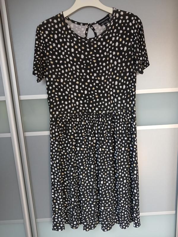 Плаття чорне трикотаж в білі крапочки рXS., підходить на S та М. В дуже гарному стані. Заміри: плечі 38, рукав довжина 18, ширина 14, пог 44, пот 41, довжина 95см.