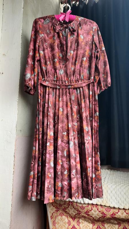 Вінтажне плаття - пліссе. Тканина поліестер. Довжина-111см, пог-51см, пот-40см (резинка-тягнеться), плечі-38см, рукав-47см. Є відправка безпечною оплатою. Даю детальну інформацію про товар, тому відповідальність за вибір речі лежить повністю на Вас. Все, що Вас цікавить по замірам, нюансам, кольорам тощо, уточнюйте до здійснення операції. 👌-підписуйтесь і дивіться інші мої речі, оновлення щодня 👖👗👚
